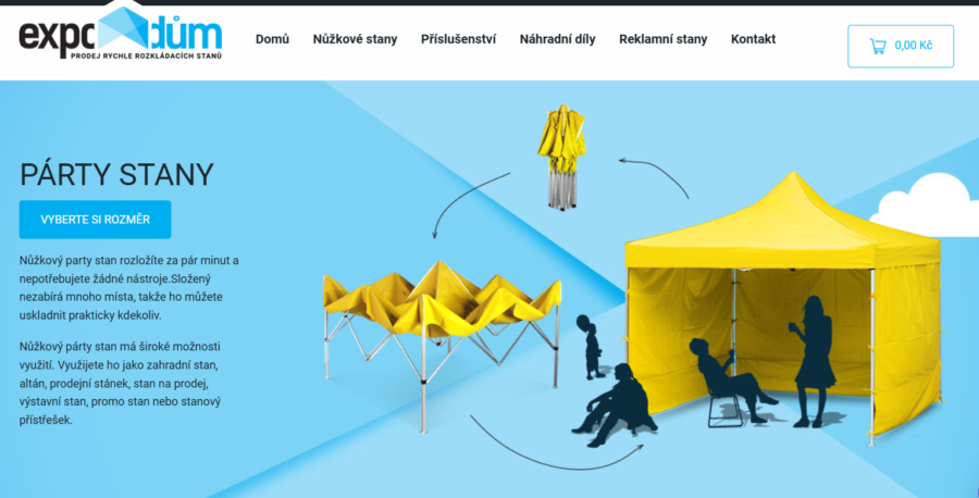 Bohužel náš stan už dosluhuje – koneckonců po těch letech, co s námi po akcích jezdí, na to má plné právo. Uvažovali jsme letos o pořízení stanu nového a víte co? Zrovna ve chvíli, kdy jsem se chystala pohledat nabídky stanů a porovnat jejich ceny, se nám ozvala firma Expodum.cz, která nám nabídla jeden z jimi prodávaných stanů zcela zdarma, jako dárek. Pro mne naprosto neuvěřitelná věc. Navíc jsme si mohli vybrat barvu, takže volba byla jasná, stan bude modrý, protože i naše logo má modré pozadí.